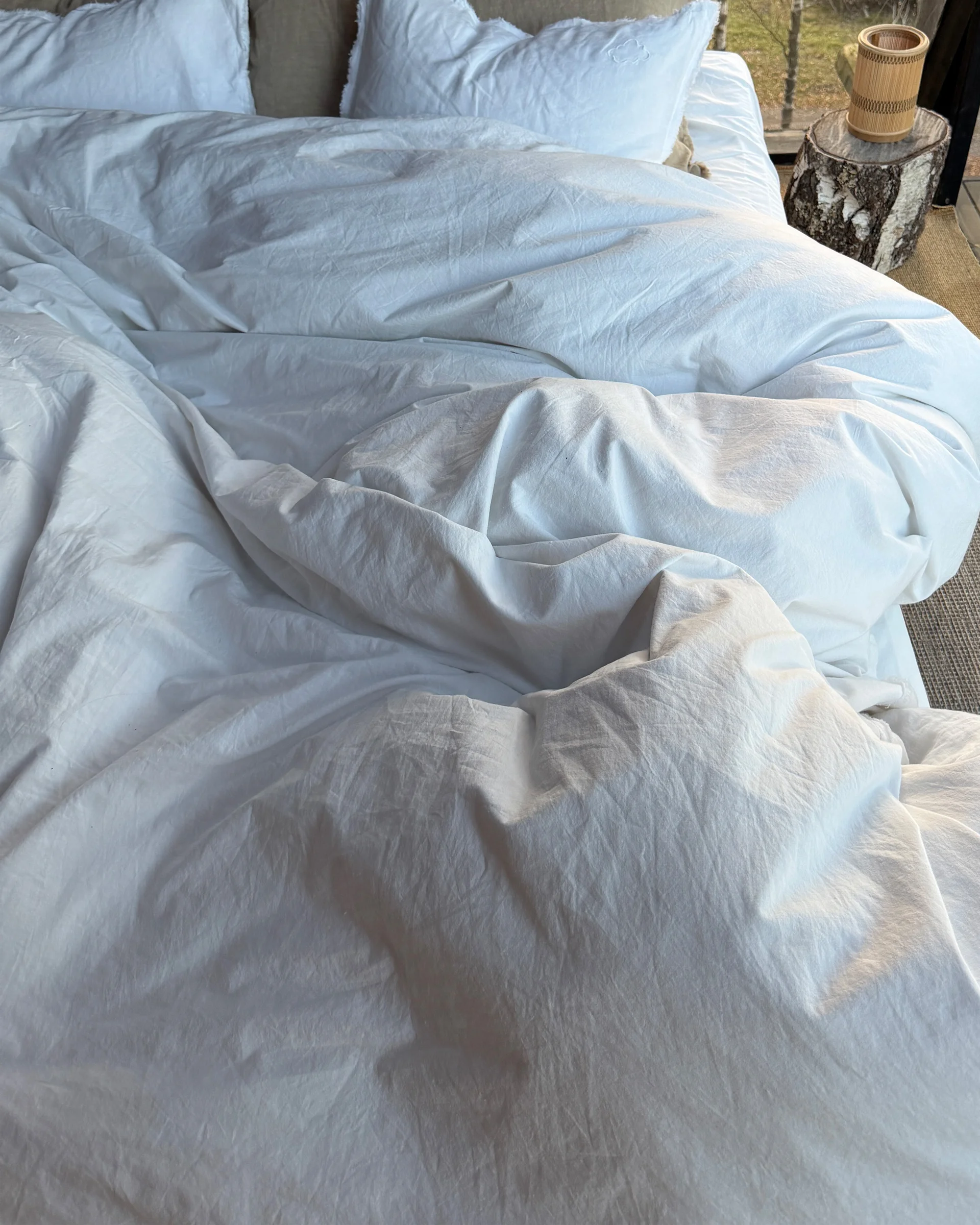 Exclusive bedding with a romantic fringed edge, crafted in two carefully selected materials, allowing you to choose between cool, elegant linen for warm summer nights or soft, warming cotton to wrap yourself in during the winter darkness, for a sleep experience beyond the ordinary.